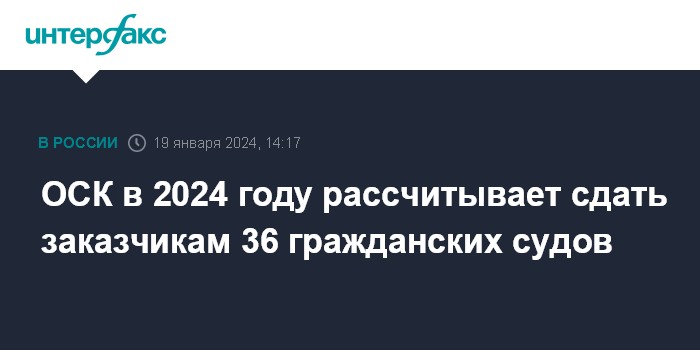 Москва. 19 января. INTERFAX.RU - "Объединенная судостроительная корпорация" (ОСК) в 2024 году рассчитывает передать заказчикам 36 судов в сегменте гражданского судостроения, сообщила корпорация.