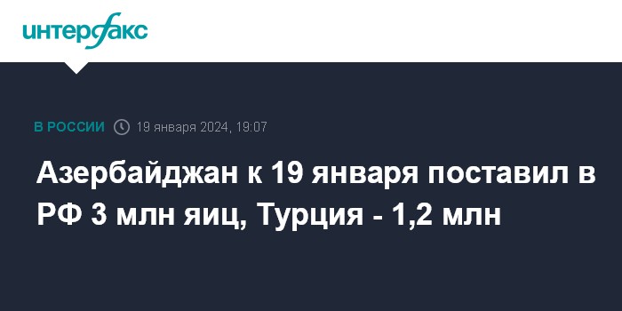 Азербайджан к 19 января поставил в РФ 3 млн яиц, Турция - 1,2 млн