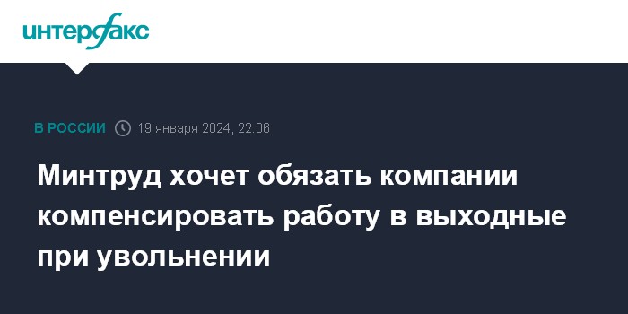 Минтруд хочет обязать компании компенсировать работу в выходные при увольнении