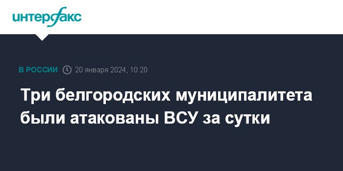 Москва. 20 января. INTERFAX.RU - Губернатор Белгородской области Вячеслав Гладков сообщил об ударах, нанесенных по территории региона со стороны Украины за минувшие сутки.