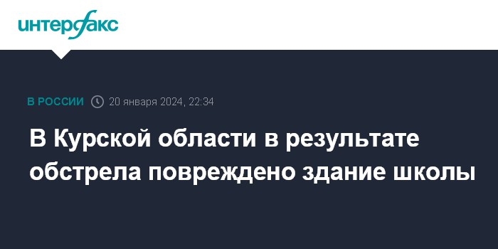 Москва. 20 января. INTERFAX.RU - В субботу из-за украинского обстрела пострадало здание школы в Курской области, сообщил губернатор региона Роман Старовойт.