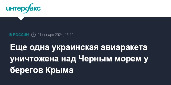 Москва. 21 января. INTERFAX.RU - Российские военные около 14:30 сбили еще одну авиационную управляемую ракету вооруженных сил Украины (ВСУ) над Черным морем, заявили в Минобороны РФ.