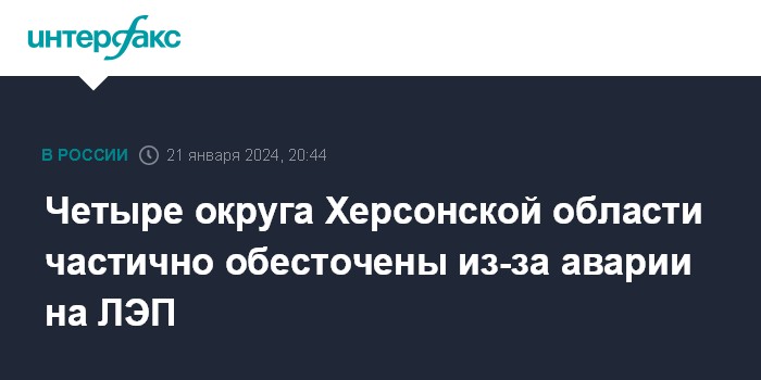 Четыре округа Херсонской области частично обесточены из-за аварии на ЛЭП