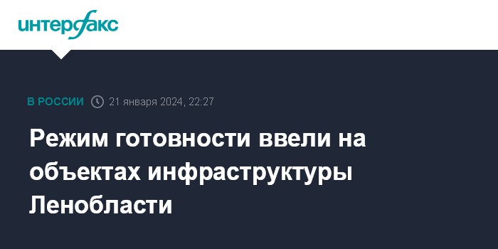 Москва. 21 января. INTERFAX.RU - Во всех районах Ленинградской области объявлен режим повышенной готовности на объектах критической инфраструктуры, сообщает правительство региона в воскресенье.