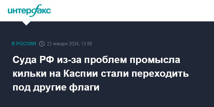Москва. 22 января. INTERFAX.RU - Росрыболовство обеспокоено тем, что проблемы промысла кильки на Каспии нередко приводят к перерегистрации судов под другие флаги. Глава ведомства Илья Шестаков намерен остановить такую практику, сообщает ведомство.