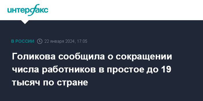 Голикова сообщила о сокращении числа работников в простое до 19 тысяч по стране