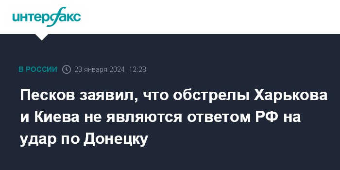 Песков заявил, что обстрелы Харькова и Киева не являются ответом РФ на удар по Донецку