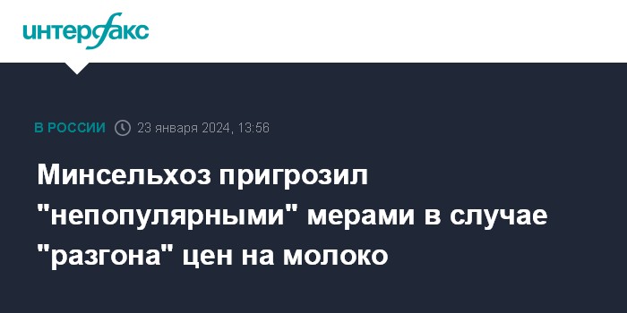 Министр напомнил случай, когда регуляторные действия Минсельхоза привели к решению проблемы затоваривания на рынке сухого молока и снижения цен на него. В 2023 году затоваривание негативно повлияло на цены "в сторону снижения".