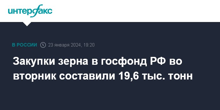 Закупки зерна в госфонд РФ во вторник составили 19,6 тыс. тонн