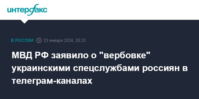 Москва. 23 января. INTERFAX.RU - В МВД России заявили о попытках вовлечения россиян в разведывательную деятельность, нацеленную на оборонный потенциал страны, со стороны украинских спецслужб.