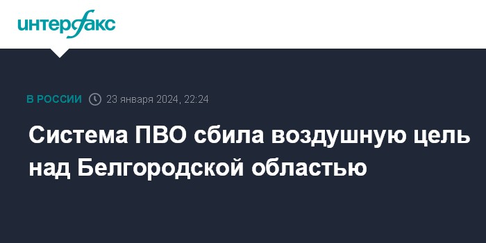 Москва. 23 января. INTERFAX.RU - Губернатор Белгородской области Вячеслав Гладков сообщил о работе системы ПВО над Валуйским городским округом.