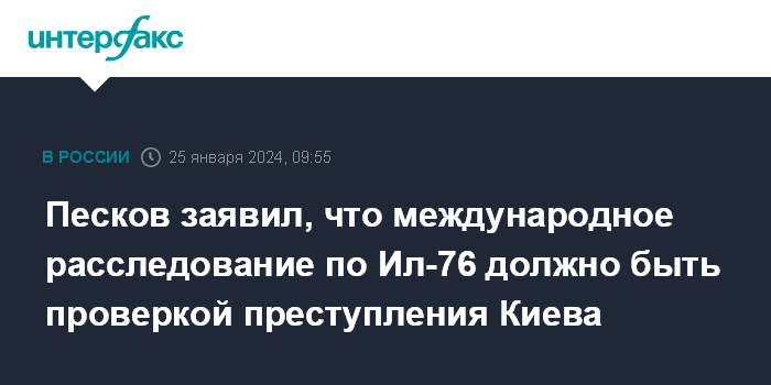 Песков заявил, что международное расследование по Ил-76 должно быть проверкой преступления Киева