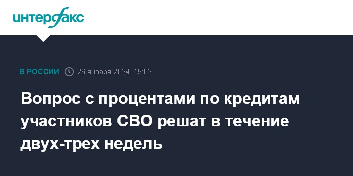 Вопрос с процентами по кредитам участников СВО решат в течение двух-трех недель