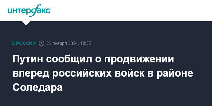 Москва. 26 января. INTERFAX.RU - Российские войска постепенно продвигаются вперед в районе Соледара, заявил студентам-участникам СВО президент Владимир Путин.