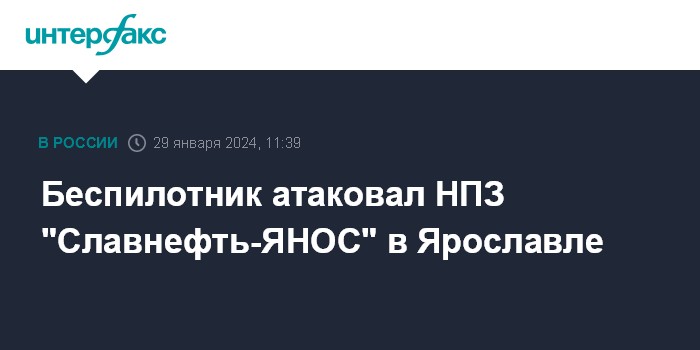 Москва. 29 января. INTERFAX.RU - Губернатор Ярославской области Михаил Евраев сообщил об атаке беспилотника на нефтеперерабатывающий завод "Славнефть-ЯНОС" в Ярославле.