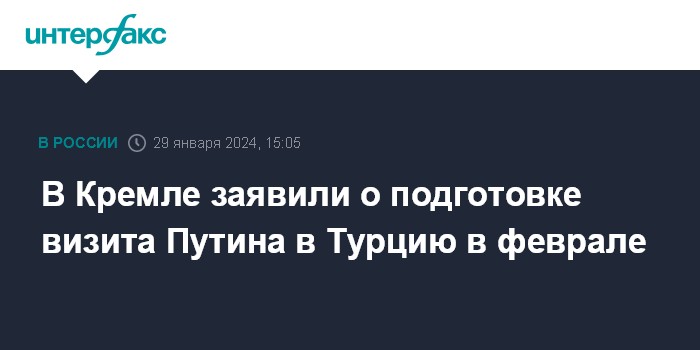 В Кремле заявили о подготовке визита Путина в Турцию в феврале