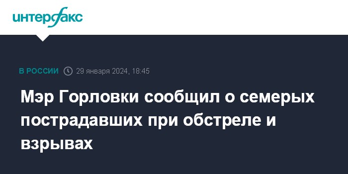 Москва. 29 января. INTERFAX.RU - Семь мирных жителей пострадали в результате обстрела Горловки (ДНР), шестеро раненых - сотрудники коммунальных служб, сообщил через пресс-службу мэр города Иван Приходько.
