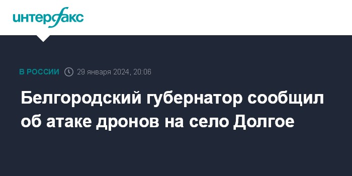 Москва. 29 января. INTERFAX.RU - Губернатор Белгородской области Вячеслав Гладков сообщил об атаке украинскими дронами территории Валуйского района.