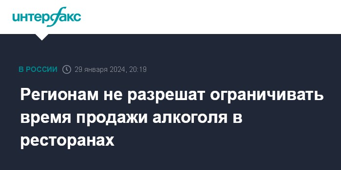 Регионам не разрешат ограничивать время продажи алкоголя в ресторанах
