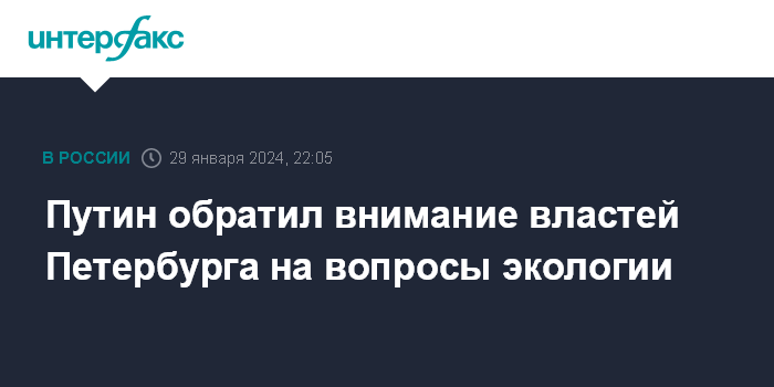 Москва. 29 января. INTERFAX.RU - Президент России Владимир Путин расценил как хорошие показатели роста промышленного производства в Санкт-Петербурге, однако отметил, что вопросы экологии требуют особого внимания властей.