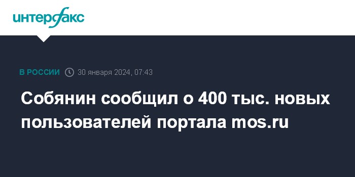 Москва. 30 января. INTERFAX.RU - В 2023 году число пользователей столичного портала mos.ru увеличилось более чем на 400 тыс. человек, написал мэр Москвы Сергей Собянин в своем телеграм-канале во вторник.