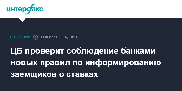 ЦБ проверит соблюдение банками новых правил по информированию заемщиков о ставках