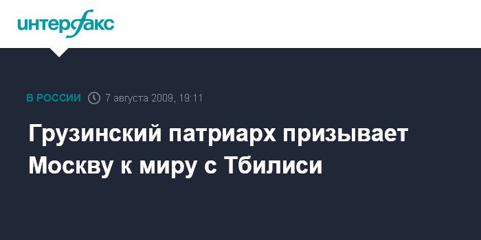 Тбилиси. 7 августа. INTERFAX.RU - Католикос-патриарх всея Грузии Илия II призвал руководство России проявить мудрость и способствовать мирному разрешению конфликта с Грузией, отметив, что грузинский народ не согласится с нарушением территориальной целостности страны.