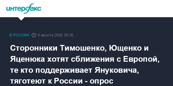 Сторонники Тимошенко, Ющенко и Яценюка хотят сближения с Европой, те кто поддерживает Януковича, тяготеют к России - опрос
