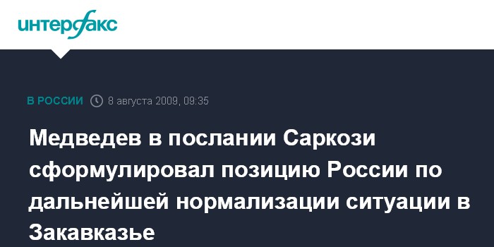 Медведев в послании Саркози сформулировал позицию России по дальнейшей нормализации ситуации в Закавказье