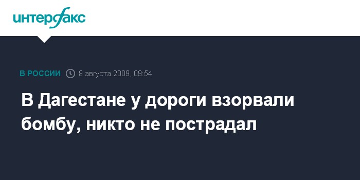 Москва. 8 августа. INTERFAX.RU - В Дагестане в Хасавюрте на обочине дороги произошел взрыв устройства, рассказал "Интерфаксу" источник в правоохранительных органах.