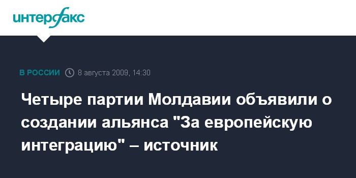 Кишинев. 8 августа. INTERFAX.RU - Четыре политические партии, которые до выборов 29 августа в парламент Молдавии находились в оппозиции к партии коммунистов, заявили о создании альянса "За европейскую интеграцию".