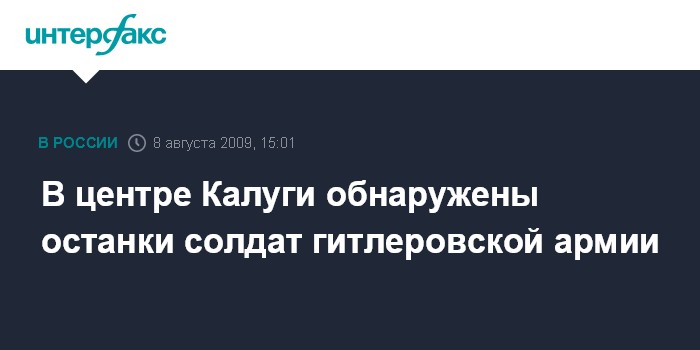Калуга. 8 августа. INTERFAX.RU - При реконструкции сквера Ленина в Калуге найдены останки немецких солдат, сообщили "Интерфаксу" в пресс-службе городской управы.