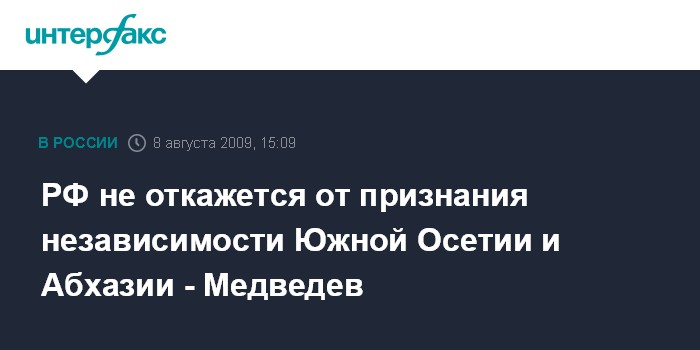 РФ не откажется от признания независимости Южной Осетии и Абхазии - Медведев