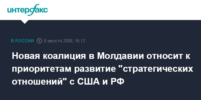 Кишинев. 8 августа. INTERFAX.RU - Правящий в Молдавии "Альянс за европейскую интеграцию" выступает за развитие "стратегических отношений" с США и Российской Федерацией.