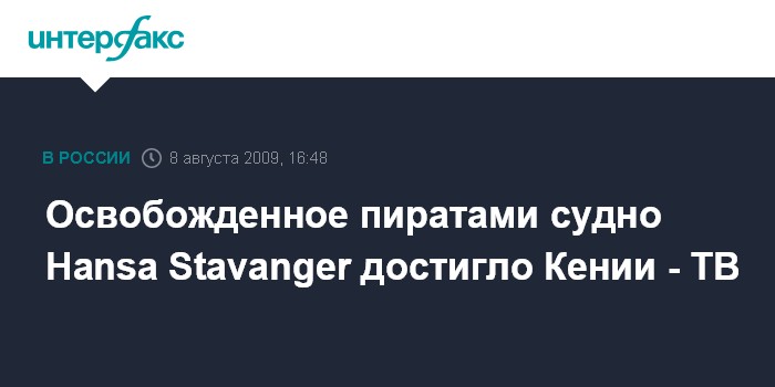 Киев. 8 августа. INTERFAX.RU - Освобожденное сомалийскими пиратами судно Hansa Stavanger с гражданами Украины и России на борту прибыло в порт Момбаса (Кения).
