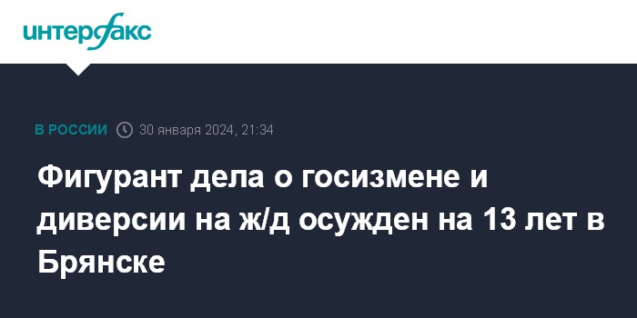 Фигурант дела о госизмене и диверсии на ж/д осужден на 13 лет в Брянске