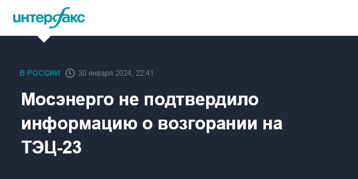 Москва. 30 января. INTERFAX.RU - ТЭЦ-23 работает в обычном режиме, на территории электростанции возгораний не было, сообщила пресс-служба ПАО "Мосэнерго", комментируя сообщения о возможном возгорании на объекте.