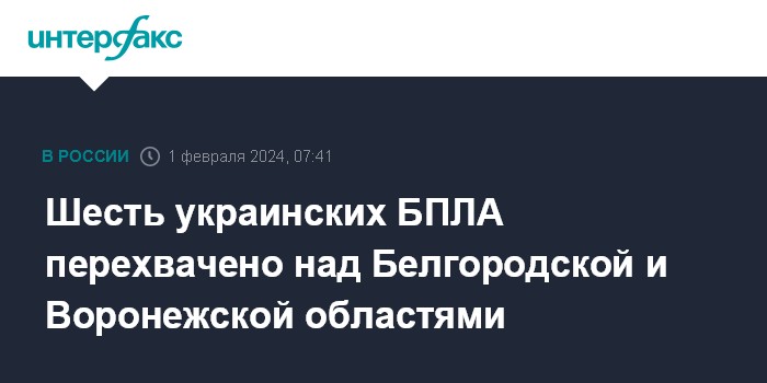 Шесть украинских БПЛА перехвачено над Белгородской и Воронежской областями