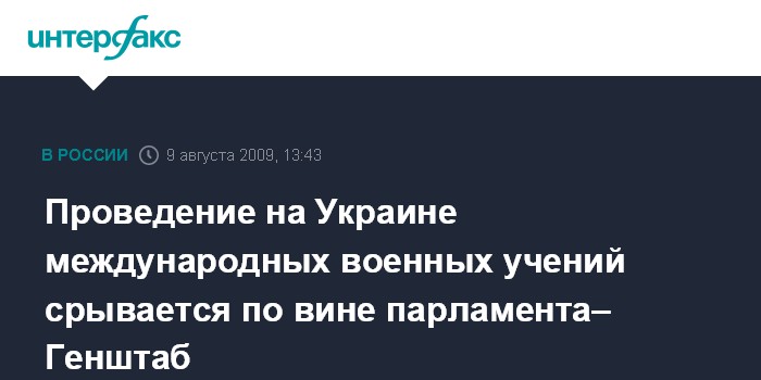 Киев. 9 августа. INTERFAX.RU - Проведение на территории Украины военных международных учений срывается, поскольку Верховная Рада так и не приняла законопроект о допуске иностранных военных на территорию страны, сообщили агентству "Интерфакс-Украина" в пресс-службе Генерального штаба в воскресенье.