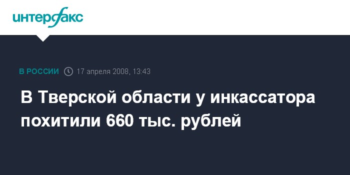 В Тверской области у инкассатора похитили 660 тыс. рублей