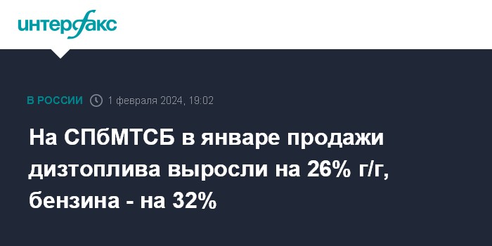 На СПбМТСБ в январе продажи дизтоплива выросли на 26% г/г, бензина - на 32%