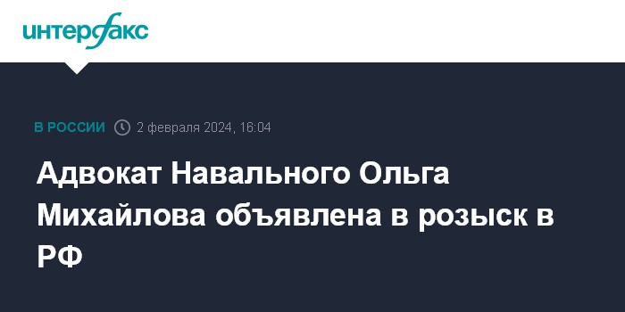 Москва. 2 февраля. INTERFAX.RU - МВД России объявило в розыск одного из защитников Алексея Навального - адвоката Ольгу Михайлову.