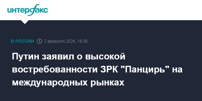 Путин заявил о высокой востребованности ЗРК "Панцирь" на международных рынках