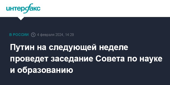 Путин на следующей неделе проведет заседание Совета по науке и образованию