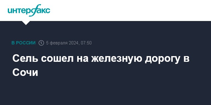 Москва. 5 февраля. INTERFAX.RU - В Сочи устраняют последствия схода селя на железнодорожное полотно, движение электричек временно приостановлено, сообщается в телеграм-канале департамента транспорта и дорог администрации Сочи в понедельник.