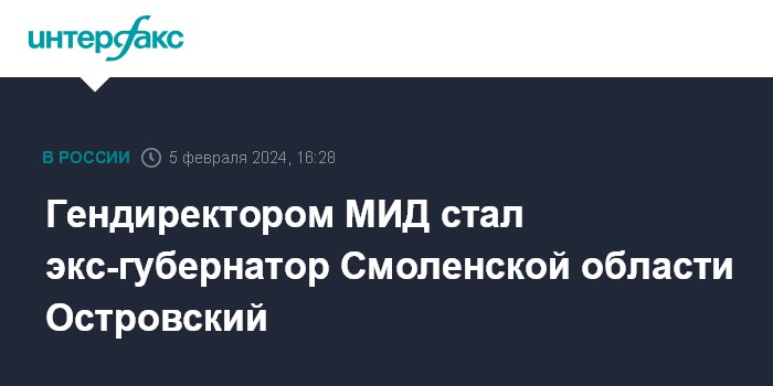 Гендиректором МИД стал экс-губернатор Смоленской области Островский