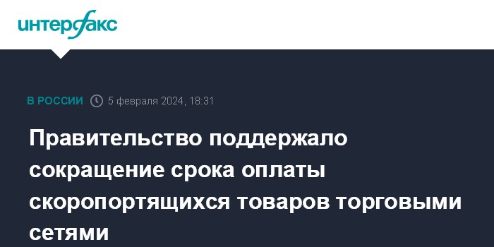 Правительство поддержало сокращение срока оплаты скоропортящихся товаров торговыми сетями