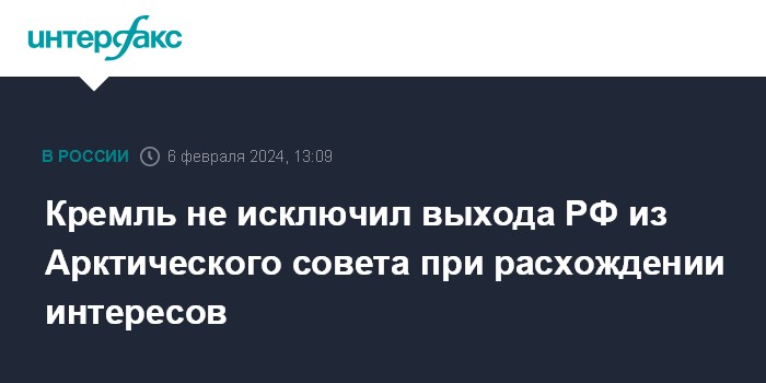 Москва. 5 февраля. INTERFAX.RU - Россия сохраняет работу в Арктическом совете, однако может выйти из него, если эта организация перестанет соответствовать интересам нашей страны, заявил пресс-секретарь президента РФ Дмитрий Песков.