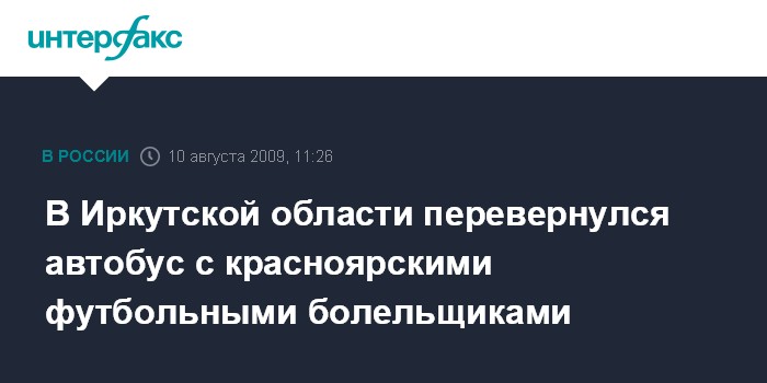 Как сообщил агентству "Интерфакс-Сибирь" начальник отдела ГИБДД ОВД по городу Тулун (Иркутская область) Сергей Ткачук, авария произошла в 53 километрах от Тулуна. На трассе впереди микроавтобуса ехали еще два автомобиля. Водитель автобуса пошел на обгон. В одной из машин впереди ехал пожилой мужчина, которому стало плохо, и он притормозил на обочине. Автобус врезался в джип и перевернулся. В салоне автобуса находилось около 10 красноярских болельщиков.