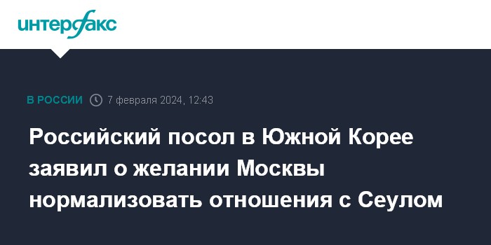 Российский посол в Южной Корее заявил о желании Москвы нормализовать отношения с Сеулом